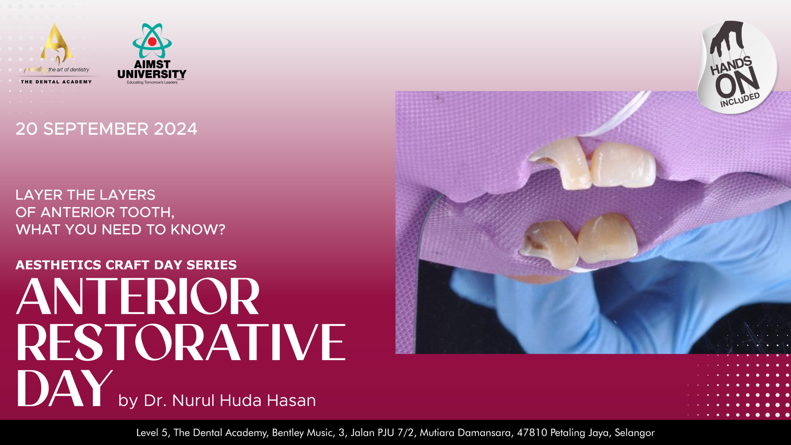 Should there be a need for cancellation or withdrawal from this course with a valid reason, kindly inform us by email at info@thedentalacademy.com.my, at least 30 days prior to the commencement of the course date.