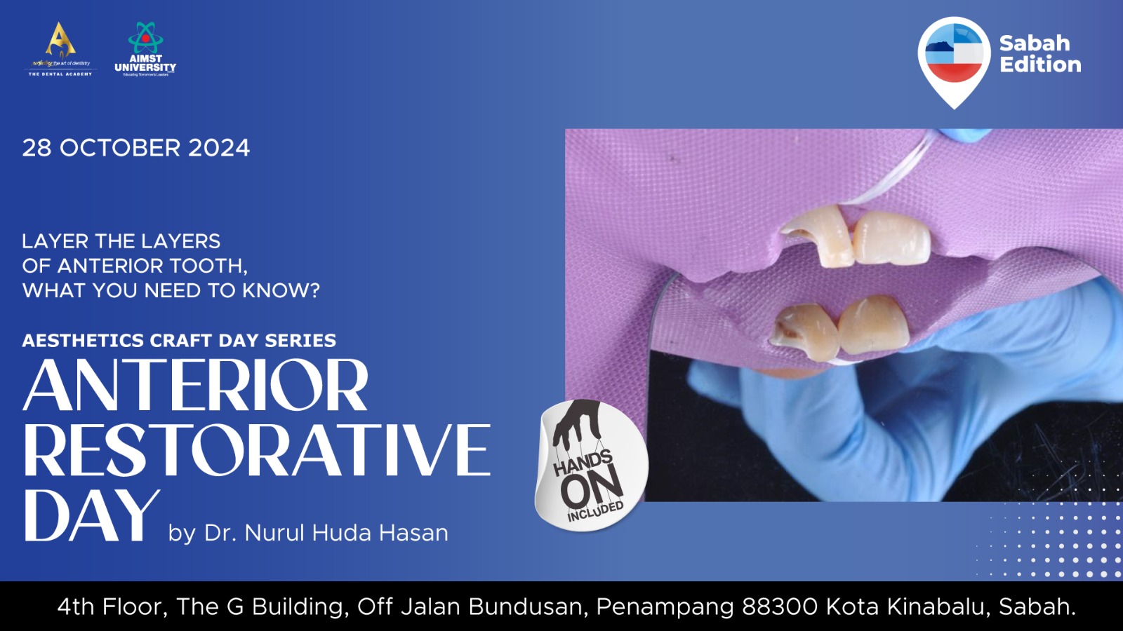 Should there be a need for cancellation or withdrawal from this course with a valid reason, kindly inform us by email at info@thedentalacademy.com.my, at least 30 days prior to the commencement of the course date.
