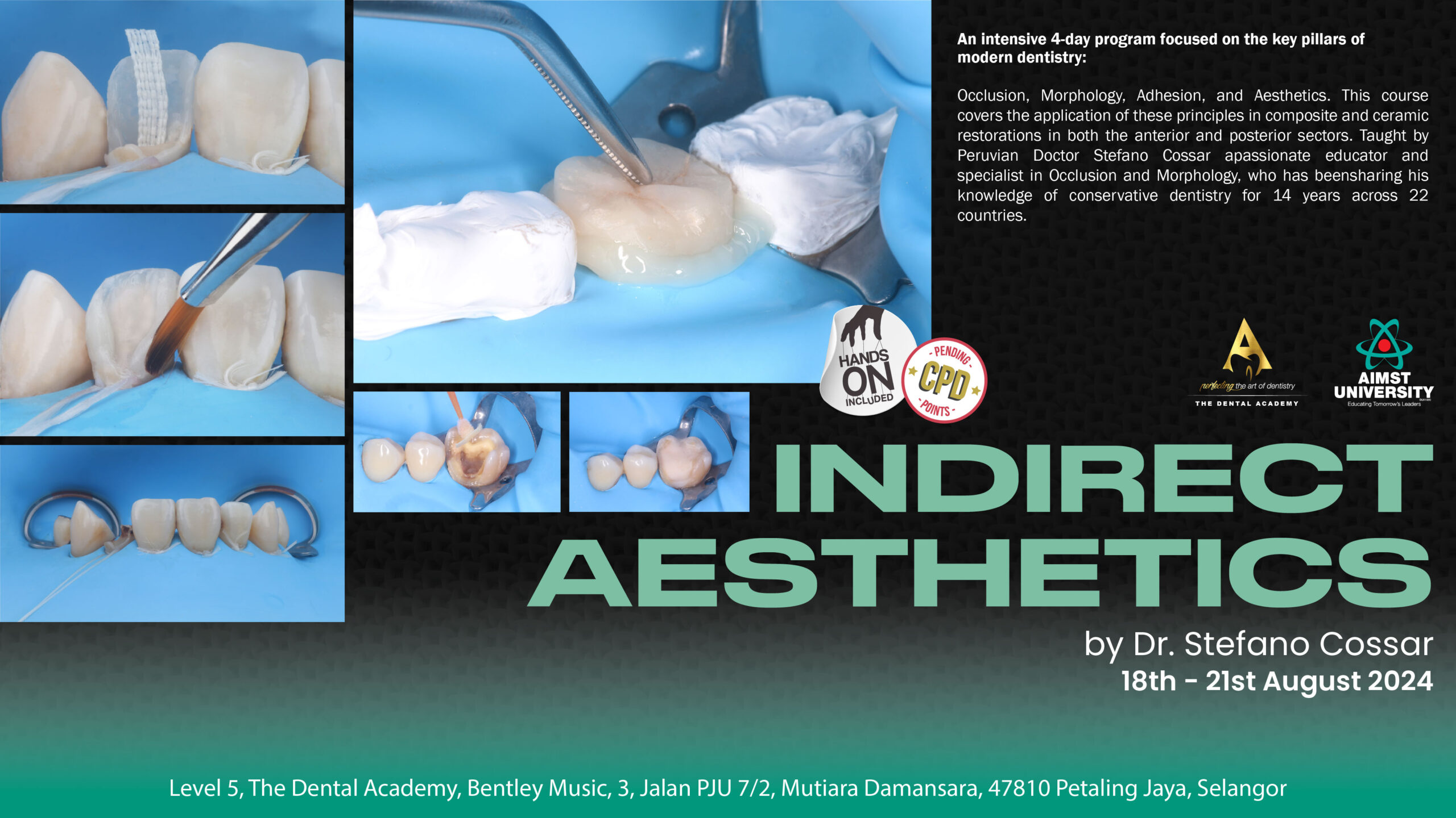 Should there be a need for cancellation or withdrawal from this course with a valid reason, kindly inform us by email at info@thedentalacademy.com.my, at least 30 days prior to the commencement of the course date.